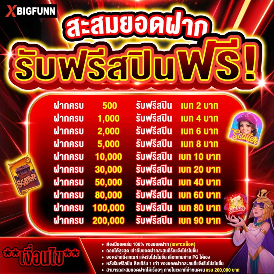 เพื่อให้การรับโปรโมชั่นเป็นเรื่องง่าย XBIGFUNN ได้พัฒนาระบบอัตโนมัติที่ช่วยให้สมาชิกสามารถรับโบนัสได้ด้วยตนเองผ่านหน้าเว็บไซต์หรือแอพพลิเคชั่น ไม่ต้องติดต่อเจ้าหน้าที่ให้ยุ่งยาก เงื่อนไขการทำเทิร์นก็ไม่สูงจนเกินไป ทำให้ทุกคนมีโอกาสถอนเงินรางวัลได้จริง มาร่วมสนุกและรับโปรโมชั่นสุดคุ้มกับ XBIGFUNN กันเถอะ!